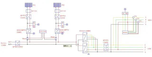 需求:直流耦合架構(gòu),支持并離網(wǎng)切換,光伏消納與峰谷套利;